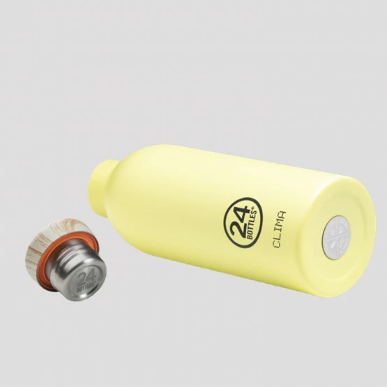 Εξοπλίσου κατάλληλα με την 24Bottles ώστε να έχεις το νερό ή το ρόφημά σου μαζί σου σε κάθε νέα εμπειρία! Η Clima σειρά, έφερε την επανάσταση στα θερμό τα οποία είναι κατασκευασμένα από βιώσιμα υλικά. Από το γραφείο στο γυμναστήριο, από το βουνό στην θάλασσα, απολαμβάνεις το ρόφημά σου διατηρώντας σταθερή τη θερμοκρασία του για πολλές ώρες. Το Clima Citrus Bottle συνδυάζει στυλ σε πράσινη απόχρωση, λειτουργικότητα και οικολογικά υλικά σε ένα μπουκάλι! Ανοίγει και κλείνει με μια κίνηση, επιτρέποντάς σου να παραμένεις ενυδατωμένος εύκολα και γρήγορα. Είναι κατασκευασμένο από ανοξείδωτο χάλυβα και 100% χωρίς ΒΡΑ, με χωρητικότητα 500 ml.