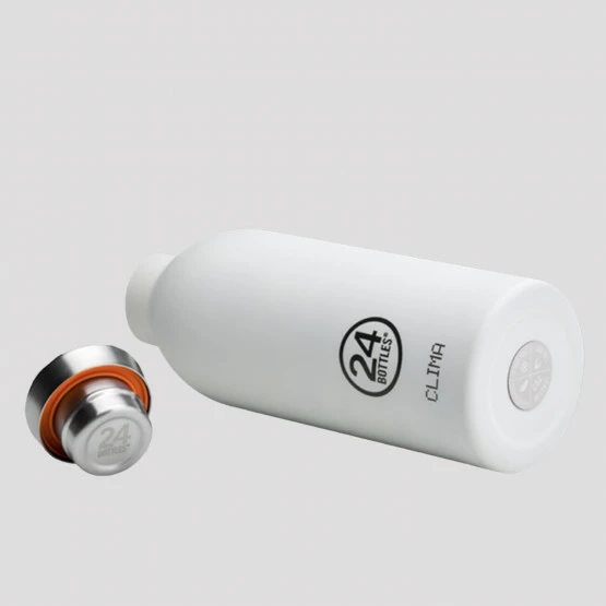 Εξοπλίσου κατάλληλα με την 24Bottles ώστε να έχεις το νερό ή το ρόφημά σου μαζί σου σε κάθε νέα εμπειρία! Η Clima σειρά, έφερε την επανάσταση στα θερμό τα οποία είναι καταασκευασμένα από βιώσιμα υλικά. Από το γραφείο στο γυμναστήριο, από το βουνό στην θάλασσα, απολαμβάνεις το ρόφημά σου διατηρώντας σταθερή τη θερμοκρασία του για πολλές ώρε. Το Clima Formal Grey Bottle συνδυάζει στυλ σε μια λευκή απόχρωση, λειτουργικότητα και οικολογικά υλικά σε ένα μπουκάλι! Ανοίγει και κλείνει με μια κίνηση, επιτρέποντάς σου να παραμένεις ενυδατωμένος εύκολα και γρήγορα. Είναι κατασκευασμένο από ανοξείδωτο χάλυβα και 100% χωρίς ΒΡΑ, με χωρητικότητα 500 ml.