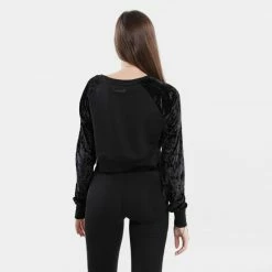 Το φθηνότερο 🧨 Μπλούζα Μακρύ Μανίκι BodyTalk Velour Γυναικείο Crop Top Με Μακρύ Μανίκι BLACK 🧨